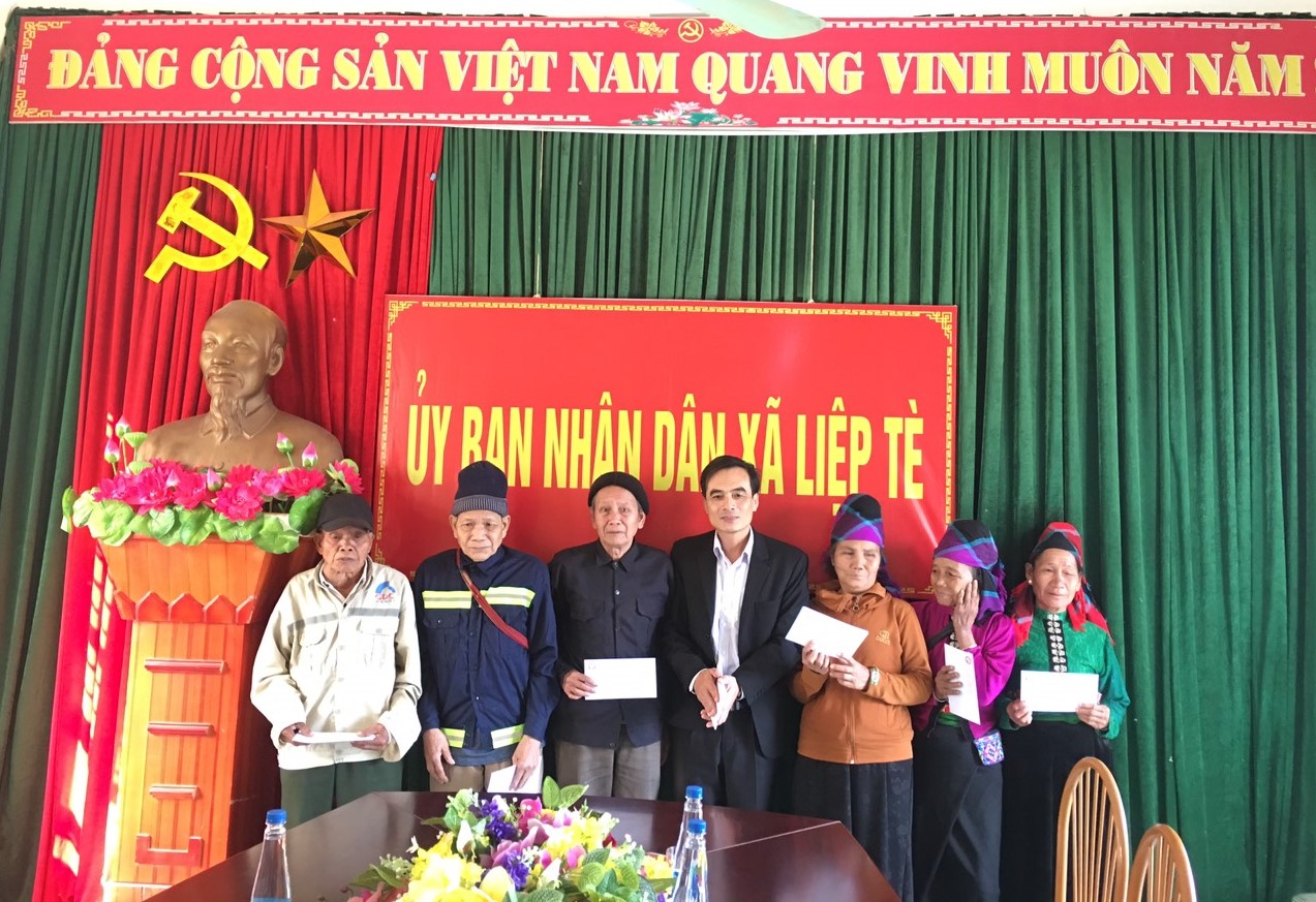 Thực hiện Quyết định số1919/QĐ- UBND ngày 13/07/2017 của UBND tỉnh Sơn La về việc phân công công ty TNHH một thành viên Xổ số kiến thiết Sơn La giúp đỡ xã Liệp tè huyện Thuận Châu; Quyết định số 1379/QĐ-UBND ngày 05-06-2014 của UBND tỉnh Sơn La về việc phối hợp giữa các tổ chức trong tỉnh giúp đỡ các xã đặc biệt khó khăn, xã biên giới, xã có công trên địa bàn Tỉnh Sơn La. Ngày 10-01-2020, Công ty TNHH một thành viên Xổ số kiến thiết Sơn La , do Ông Đỗ Viết Hải Phó Giám đốc Công ty làm trưởng đoàn cùng với các tổ chức Đoàn thể công ty đã đến Chúc tết Đảng Ủy, UBND xã, tặng quà các gia đình chính sách, gia đình có hoàn cảnh đặc biệt khó khăn tại xã Liệp Tè – Huyện Thuận Châu – Tỉnh Sơn La.
